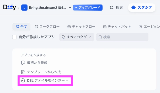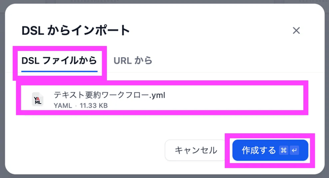 「DSLファイルから」を選択し、事前にダウンロードした特典のテンプレートをドラッグ&ドロップします。
